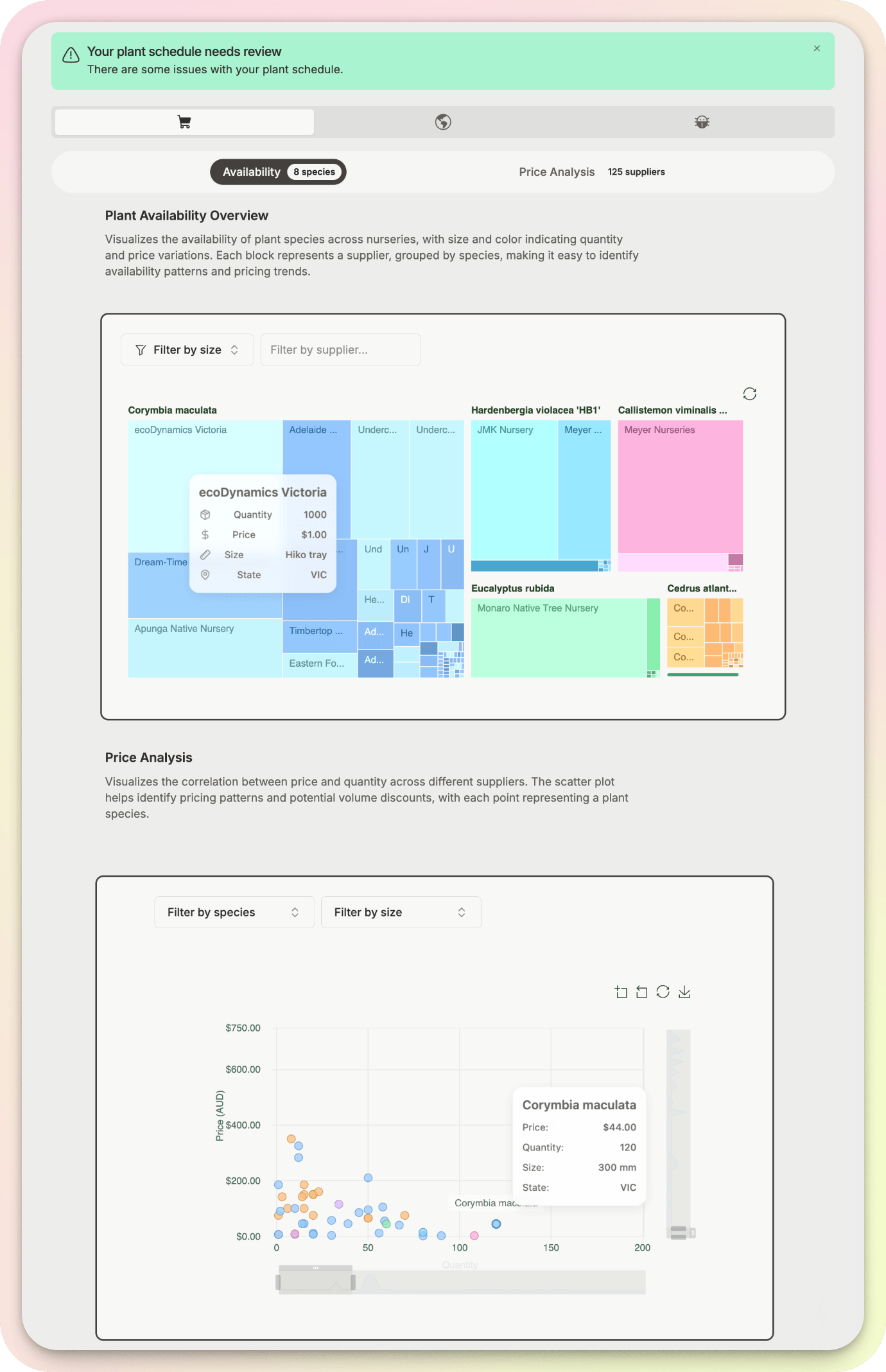 Powerful visual analyses of nursery stock and pricing—via EvergreenConnect