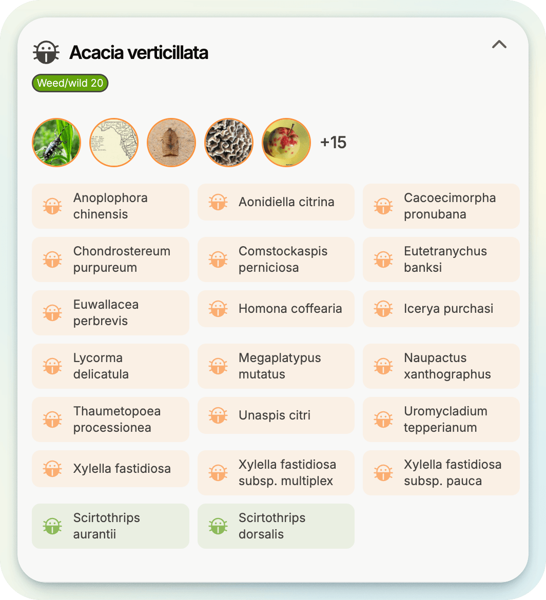 Identify major hosts of exotic plant pests to prevent and mitigate risk of biosecruity threats